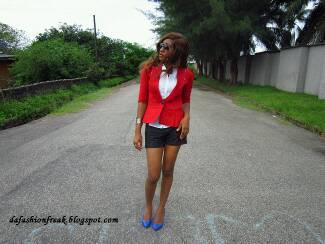 DeleteI love the contrast of the red blazer and the blue shoes, very chic!