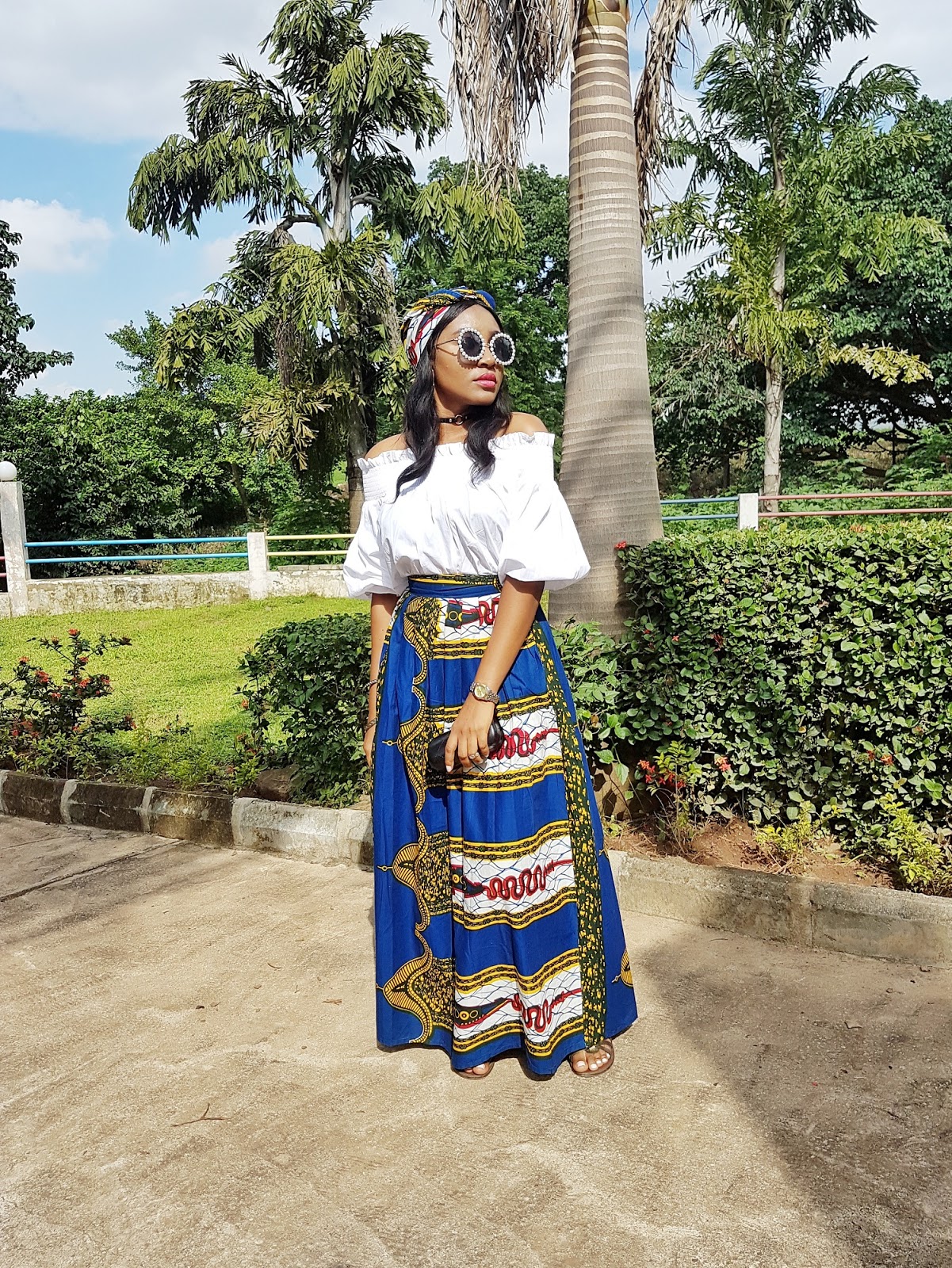 Usually, I’d wear this Ankara maxi skirt to church, paired